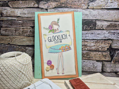 Heute habe ich eine Karte gemacht für jemanden, den man ganz doll liebhat. Auch so einen Stempel kann man ab und zu gebrauchen, finde ich. Die junge Lady hatte ich schon fertig in der Schublade