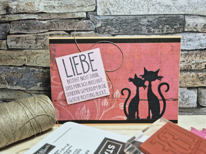 Diese romantische Karte ist heute entstanden – mit einem Fundstück aus meiner Restekiste und zwei verliebten Katzen, die gemeinsam in die Zukunft blicken. Manchmal braucht es nicht viel – nur ein